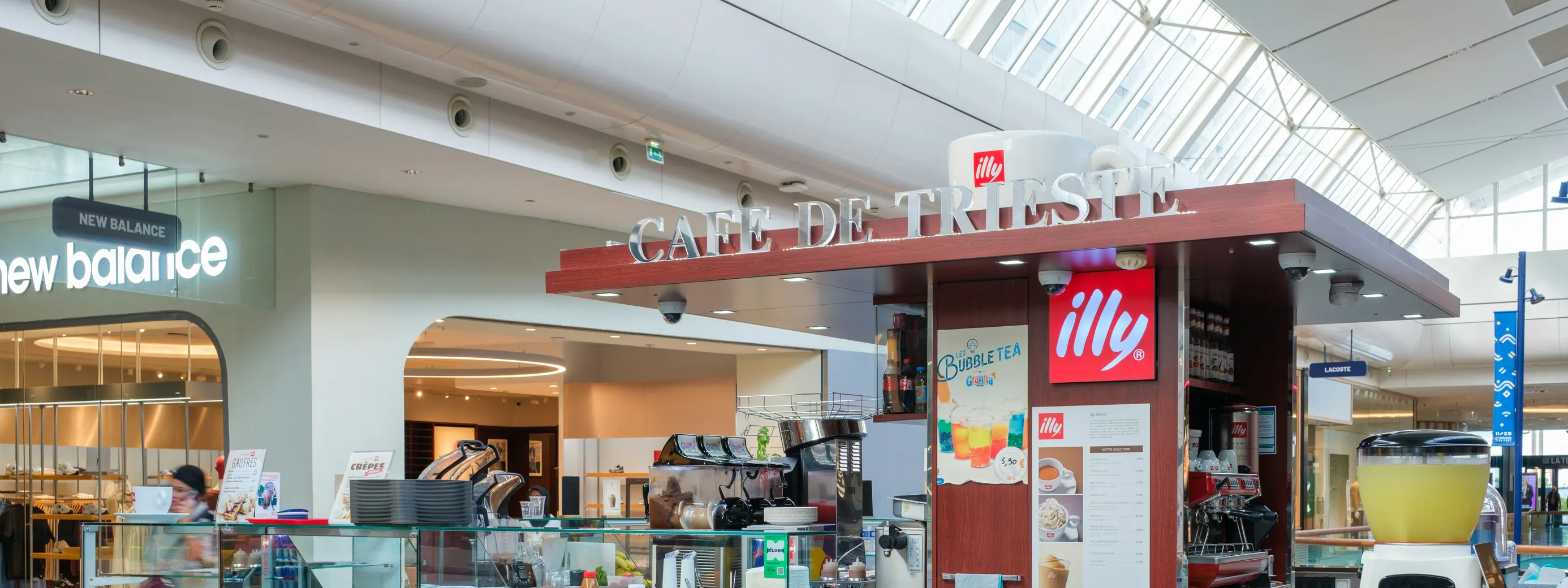 Café de Trieste accueille les visiteurs autour d’un café Illy d’exception, préparé avec expertise et servi dans une atmosphère chaleureuse et accueillante. Situé au niveau R2, le café propose une large gamme de boissons chaudes, de boissons glacées, de milkshakes ainsi que de délicieuses douceurs sucrées, idéales pour une pause gourmande. Réputé pour son café de spécialité et la qualité de son service, l’établissement propose également des options halal, le réchauffage des biberons, ainsi qu’une offre réconfortante de petits-déjeuners, desserts et encas rapides.