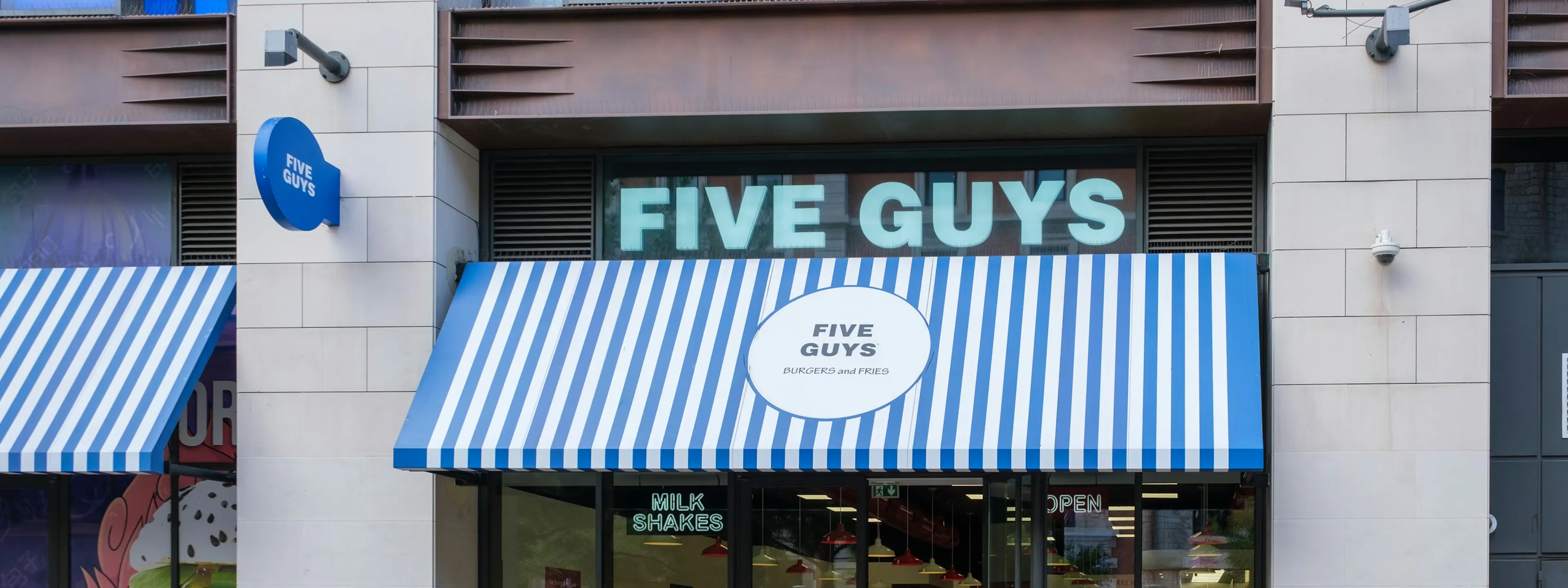 Five Guys aux Terrasses du Port propose des burgers frais et personnalisables, avec plus de 250 000 combinaisons d’ingrédients possibles. Les clients peuvent s’y retrouver pour le déjeuner, le dîner ou profiter d’un service en continu, avec des menus enfants ainsi que des options végétariennes ou halal. Des plats adaptés aux allergies sont également disponibles, notamment sans produits laitiers, sans gluten et sans fruits à coque. Boissons fraîches et milkshakes complètent la carte, le tout dans un espace entièrement accessible, avec accès de plain-pied, chaises hautes et sanitaires adaptés.